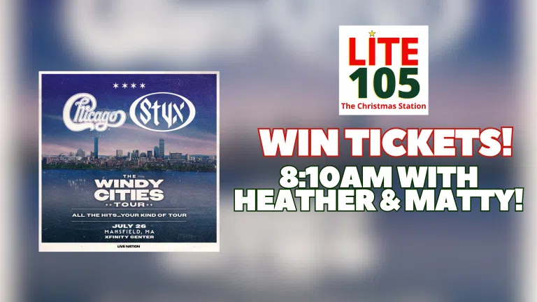 From Mon, 12/15 thru Fri, 12/19, listen at 8:10am to SPIN the WHEEL OF FUN with Heather & Matty for your chance to WIN a pair of tickets to Chicago + Styx: The Windy Cities Tour on July 26th at Xfinity Center! Win the game, WIN the tickets!