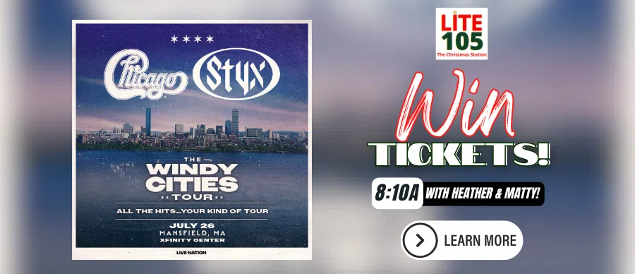 From Mon, 12/15 thru Fri, 12/19, listen at 8:10am to SPIN the WHEEL OF FUN with Heather & Matty for your chance to WIN a pair of tickets to Chicago + Styx: The Windy Cities Tour on July 26th at Xfinity Center! Win the game, WIN the tickets!