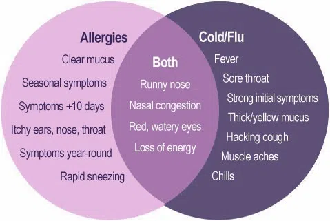 Here’s a helpful chart to show you how the symptoms of cold and allergies intersect: