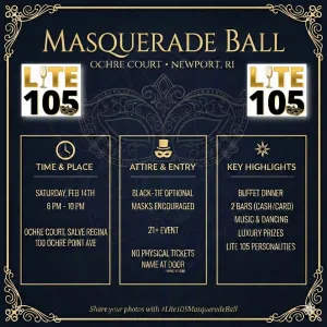This Valentine’s Night, Lite 105 will host the very first Lite 105 Masquerade Ball at Ochre Court in Newport!