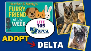 Heather & Matty’s FURRY FRIEND of the WEEK (2/2) is DELTA! The RISPCA says, “Delta is a gorgeous 9½-year-old German Shepherd weighing 86.5 pounds and bringing all the best qualities of the breed—loyalty, intelligence, and devotion—without the puppy chaos. Delta is perfectly house-trained and enjoys going for walks before settling in to relax and vibe with his people. He does well meeting new folks once properly introduced, and once you’re in, you’re in. This is a dog who truly bonds with his humans. Delta knows “sit”, is highly motivated by treats and praise, and genuinely wants to do the right thing for his people. He would prefer to be the only dog in the home, where he can soak up all the love and attention. Medically, Delta is doing well—he has only normal, age-related osteoarthritis, which doesn’t stop him from enjoying daily walks and quality time. If you’re searching for a steady, loving companion who’s past the wild stage and ready to be your loyal sidekick, Delta may be the perfect addition to your home.” Please adopt/share!