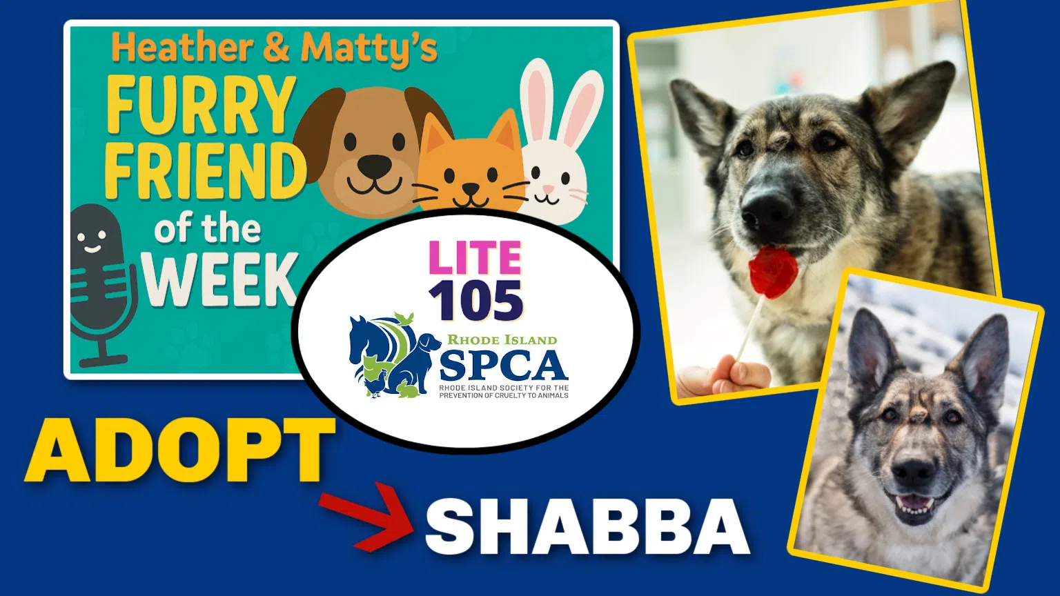 Each week, Lite 105’s Heather Gersten & Matty Blake (“Heather & Matty”) will spotLITE an adoptable animal at the Rhode Island SPCA!