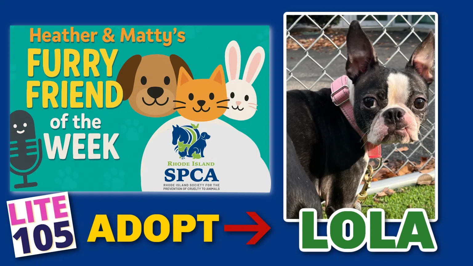 Each week, Lite 105's Heather Gersten & Matty Blake ("Heather & Matty") will spotLITE an adoptable animal at the Rhode Island SPCA! The goal is to connect YOU with animals that need loving hom...
