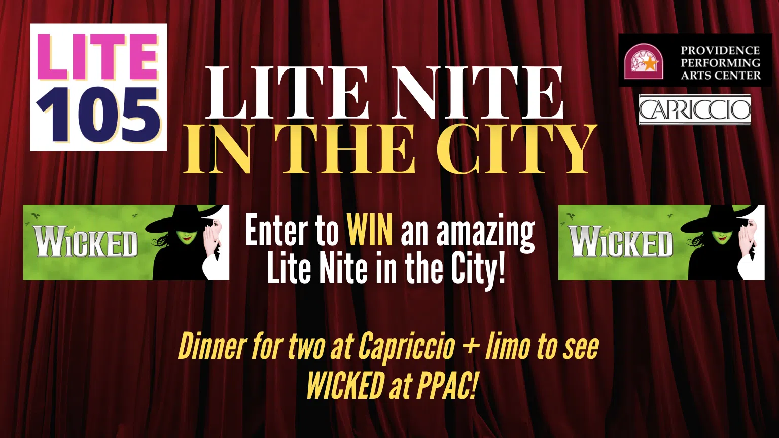 You and a guest will enjoy a delicious three-course dinner at Capriccio, then you’ll be whisked away in a limo to PPAC to see the Broadway sensation, Wicked, playing at the Providence Performing Arts Center, March 4th – 22nd.