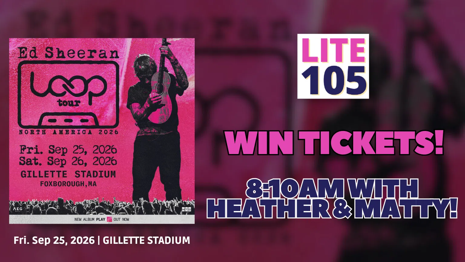 From Mon, 3/2 thru Fri, 3/6, listen at 8:10am to SPIN the WHEEL OF FUN with Heather & Matty for your chance to WIN a pair of tickets to Ed Sheeran at Gillette Stadium on Friday, September 25th! Win the game, WIN the tickets!